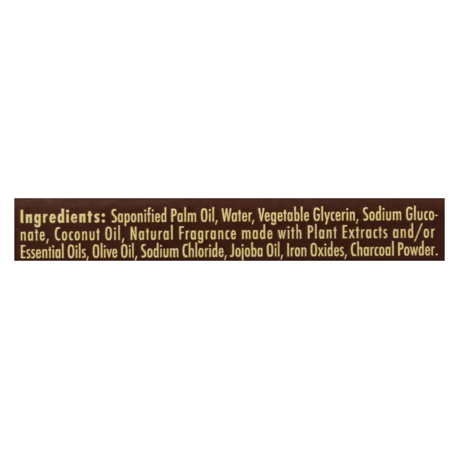 ingredients : saponified palm oil;water;vegetable glycerin;sodium gluconate;coconut oil;natural fragrance made with plant extracts and/or essential oils;olive oil;sodium chloride;jojoba oil;iron oxides;charcoal powder