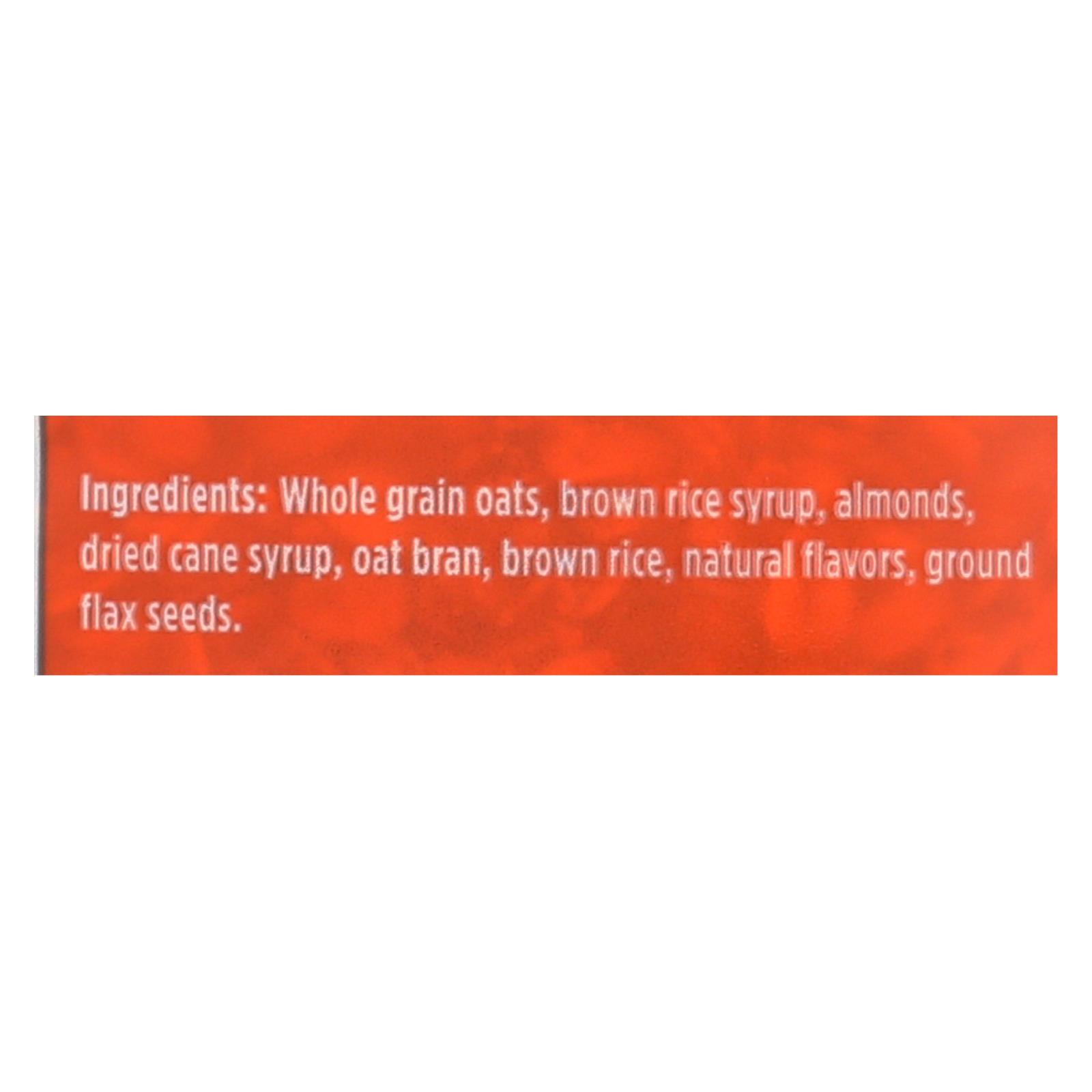 ingredients : whole grain oats;brown rice syrup;almonds;dried cane syrup;oat bran;brown rice;natural flavors;ground flax seeds