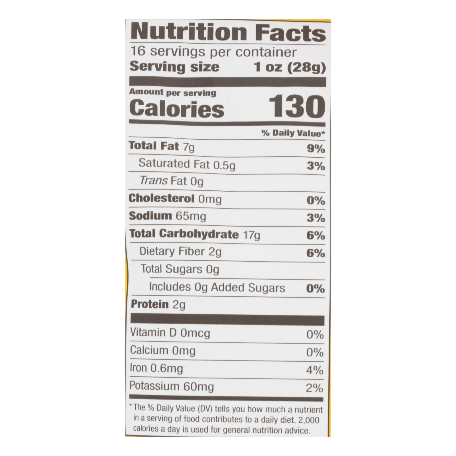 Garden of eatin, yellow corn tortilla chips party size is an authentic non-gmo corn tortilla chip. Made with organic whole corn kernels and expeller-pressed oils, these chips have no genetically modified ingredients, no hydrogenated oils, no artificial flavors, colors or preservatives. They are kosher certified, gluten-free and organic. Each bag contains 16 oz. Of delicious chips.