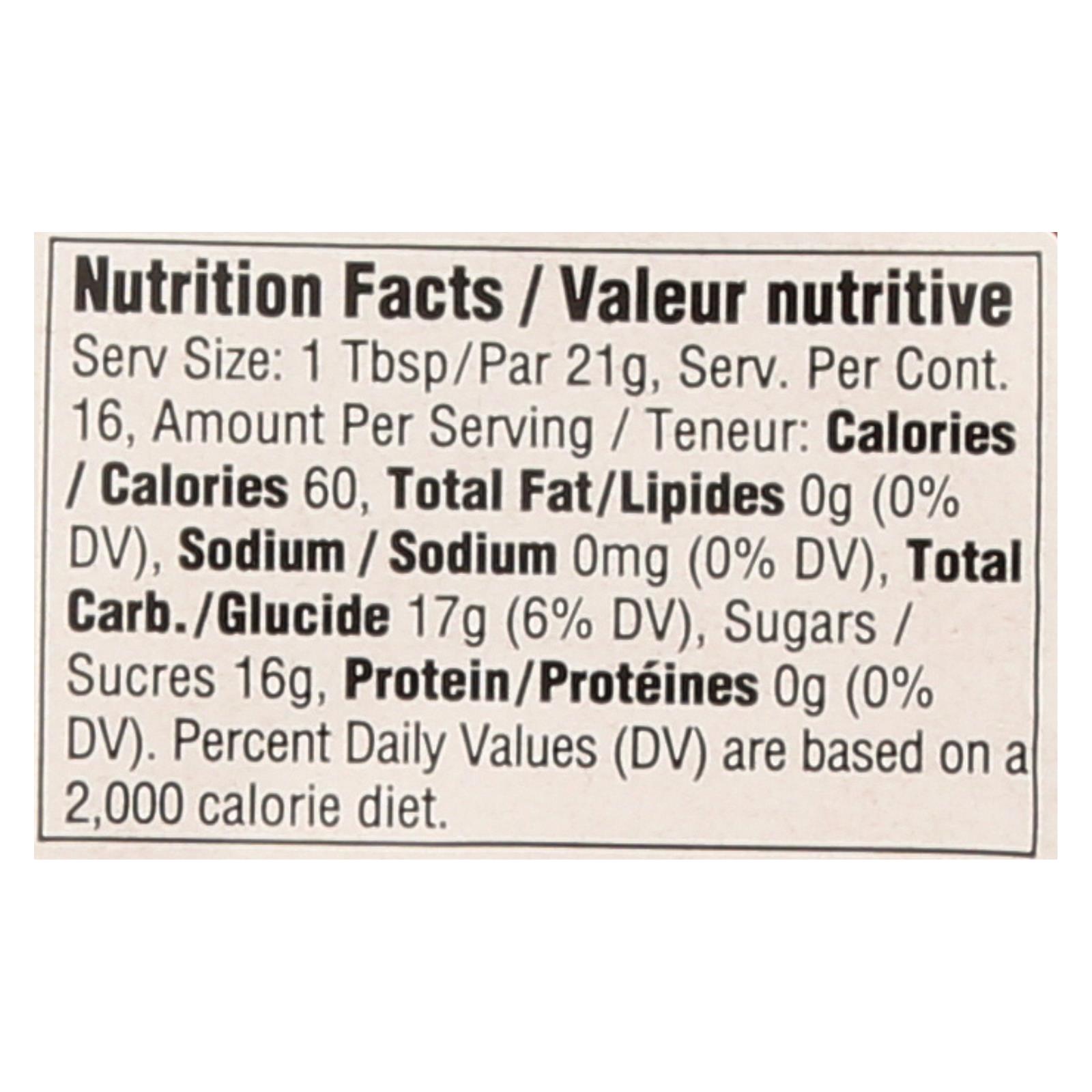 Gefen honey bear is a certified kosher-parve product. This 100% pure clover honey comes in one 12 oz. Bear bottle and is a product of the united states, canada and argentina. This honey contains 0 g. Of fat, sodium and protein, and each serving has 60 calories, 17 g. Of carbohydrates and 16 g. Of sugars.