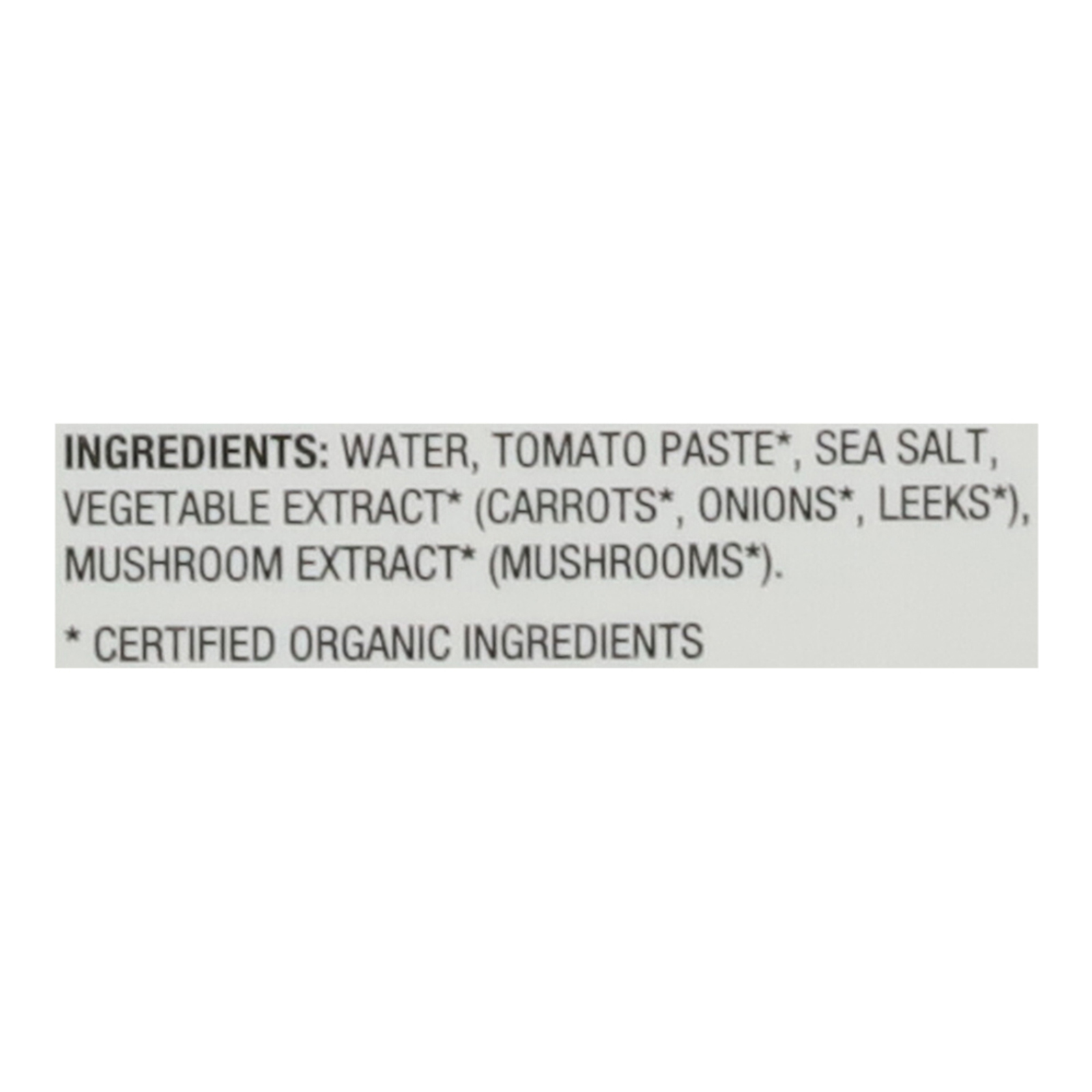 ingredients : water;tomato paste;sea salt;vegetable extract* (carrots*, onions*, leeks*);mushroom extract* (mushroom*)