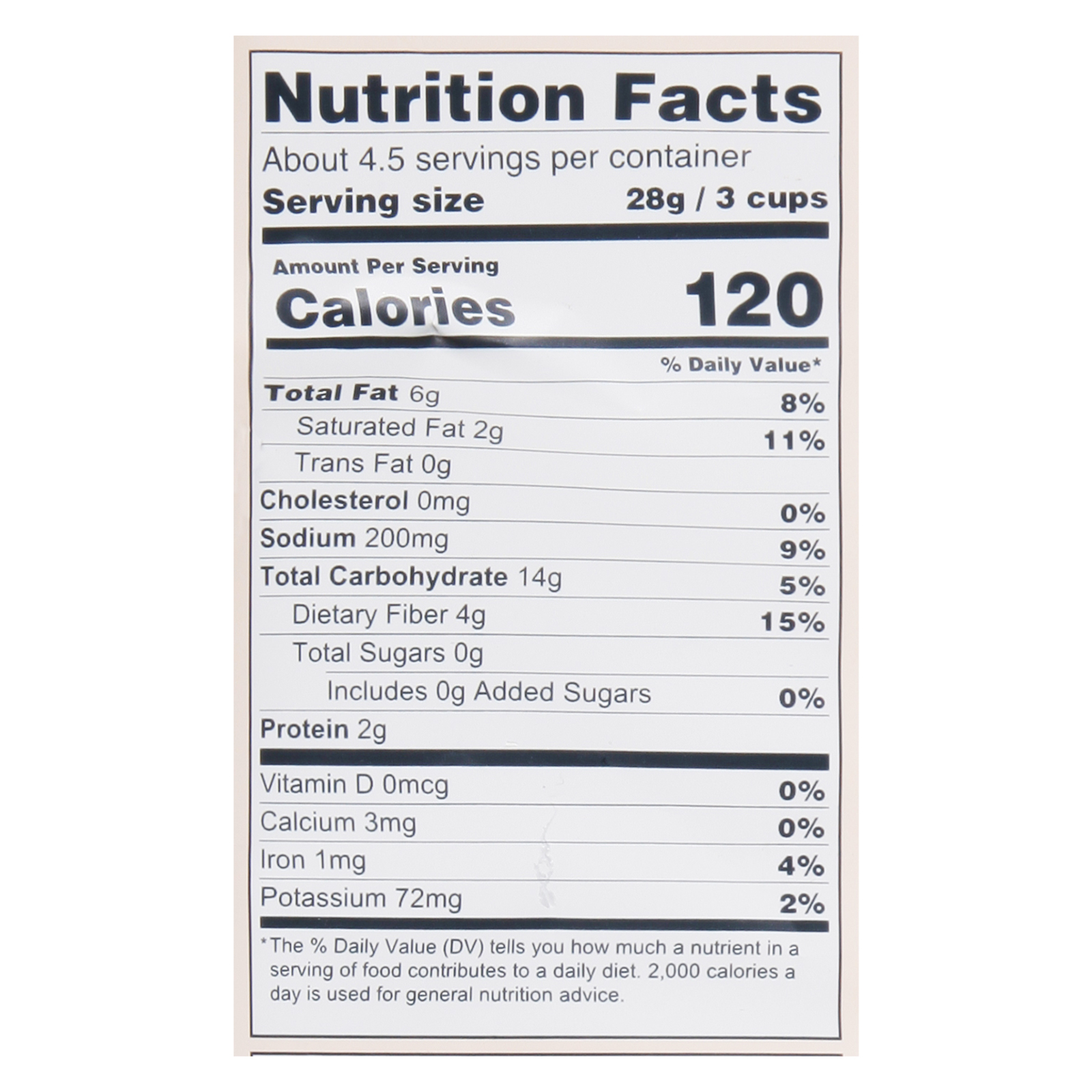 Lesser evil’s avocado-licious popcorn is made with organic kernels that are air-popped, sprinkled with drops of avocado oil and lightly dusted with himalayan pink sea salt from ancient deposits. Our popcorn is gluten and cholesterol free, vegan friendly and made with the oil of 1 and 1/4 avocados. There are 120 calories per serving and it all comes in a 5 oz. Bag.