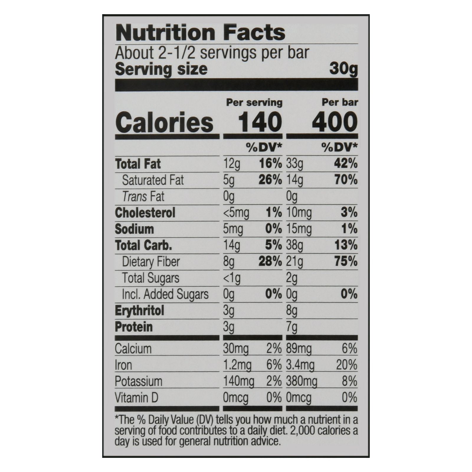 ingredients : unsweetened cocoa;cocoa butter;hazelnuts;erythritol ;chicory root fiber;dextrin ;whole milk powder (rbst free);milk fat (rbst free);organic soy lecithin;sunflower lecithin;stevia extract;vanilla extract