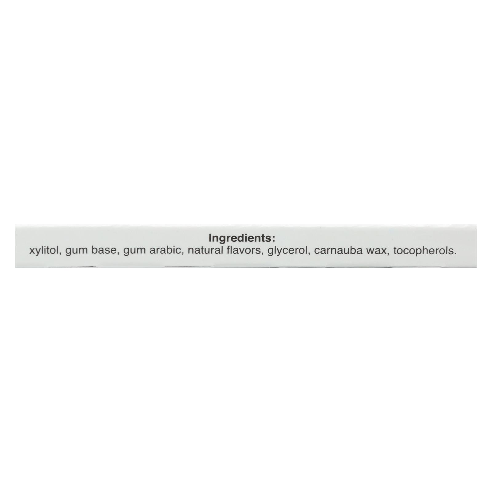 ingredients : xylitol;gum base;gum arabic;natural flavors;glycerol;carnauba wax;tocopherols
