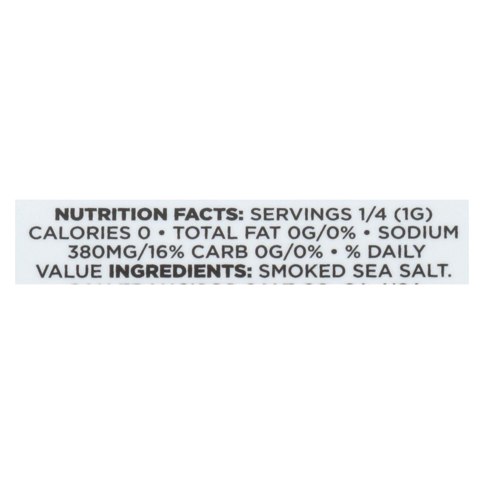 San francisco salt company hickory smoked sea salt features pure sea salt combined with real wood smoke for a delicious bbq flavor that enhances any food. Use this condiment to season potato salads, cuts of meat, marinades, popcorn and much more. Each serving holds 380 mg. Of sodium, but the intense taste means only a small amount is necessary. This can contains 5 oz. Of hickory smoked sea salt.