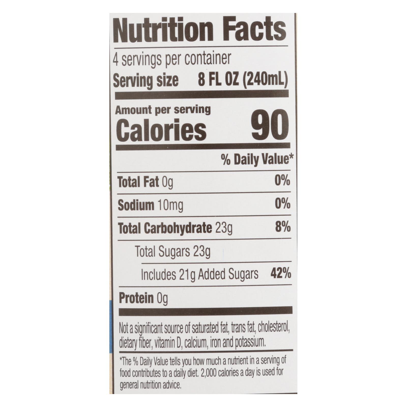 Lemon and blueberry flavored beverage from concentrate. 90 calories per 8 fl oz. Usda organic. Certified organic by quality assurance international. Gluten free. Non gmo project verified. Nongmoproject.org. Our passion for nature: we love nature and believe it’s the trust form of art. Because of that, we are committed to being sustainable, responsible, and keeping our planet remarkable. This is part of everything we do – from diverting more than 95% of our waste from landfills at our chico, ca, location, to buying enough renewable energy credits each year to cover our production needs. We’re committed to long-term care for the environment, so you can enjoy some of nature’s feel good in everyday moments. We take organics seriously: we have been pioneers of the organic movement since the early 1970s and remain committed to the pursuit of better. We are certified organic, meeting all usda organic requirements, and have rigorous quality standards for our growers, suppliers, and processes. It’s who we are, it’s what we do. And more importantly, it’s what we love. Live organic. Live santa cruz. Natural separation may occur. Santacruzorganic.com.