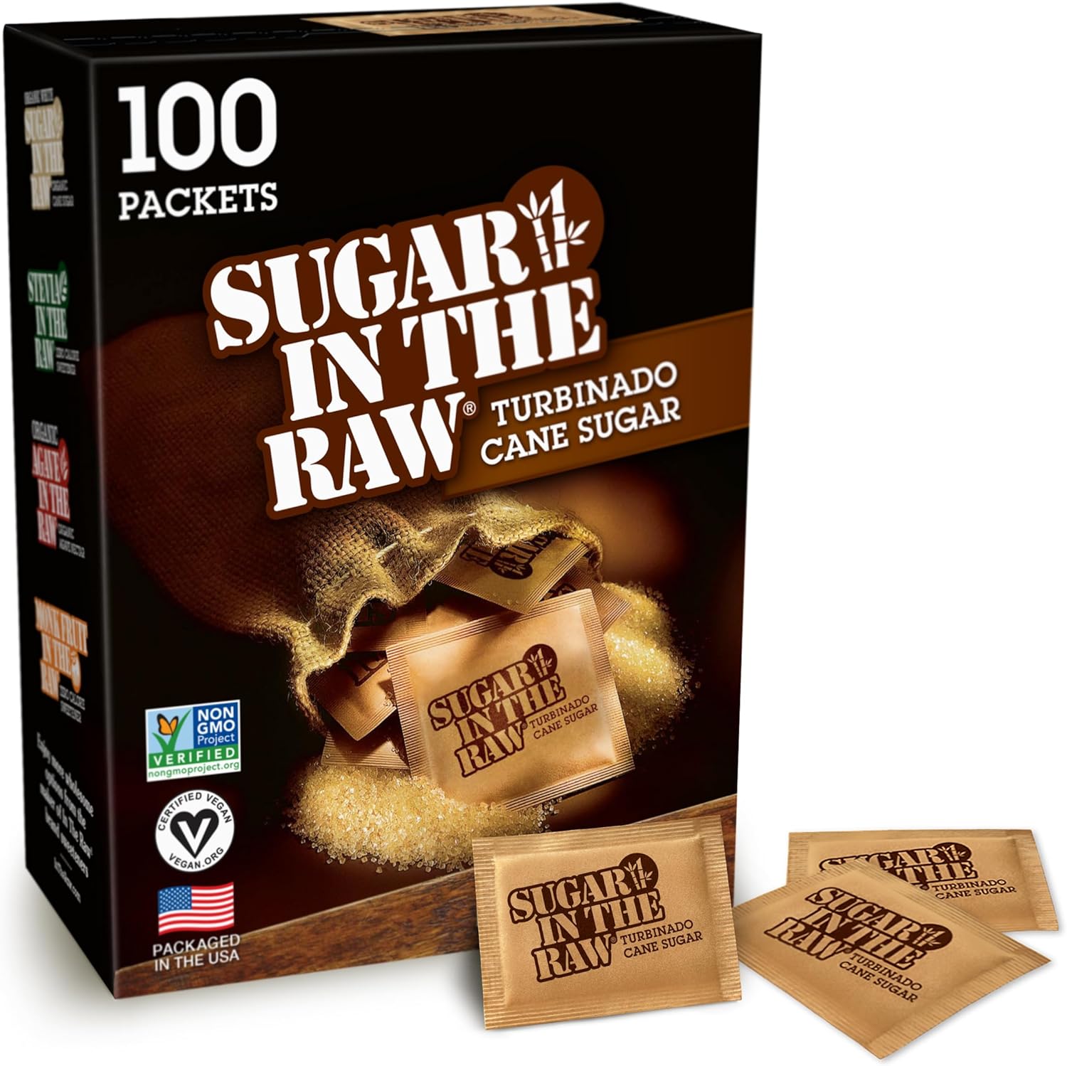 Add a dash of all natural sweetness to your morning coffee with sugar in the raw turbinado sugar packets. Our cane sugar is vegan, kosher and gluten-free to accommodate a variety of dietary restrictions. With only 20 calories per serving, our non-gmo sugar is a guilt-free way to sweeten all your favorite foods and beverages. Includes 100 5 g. Turbinado sugar packets. Enjoy sweet moments with sugar in the raw, our turbinado sugar grown in the tropics. The hearty, golden crystals are never bleached, so they keep the rich flavor and color of their natural molasses.