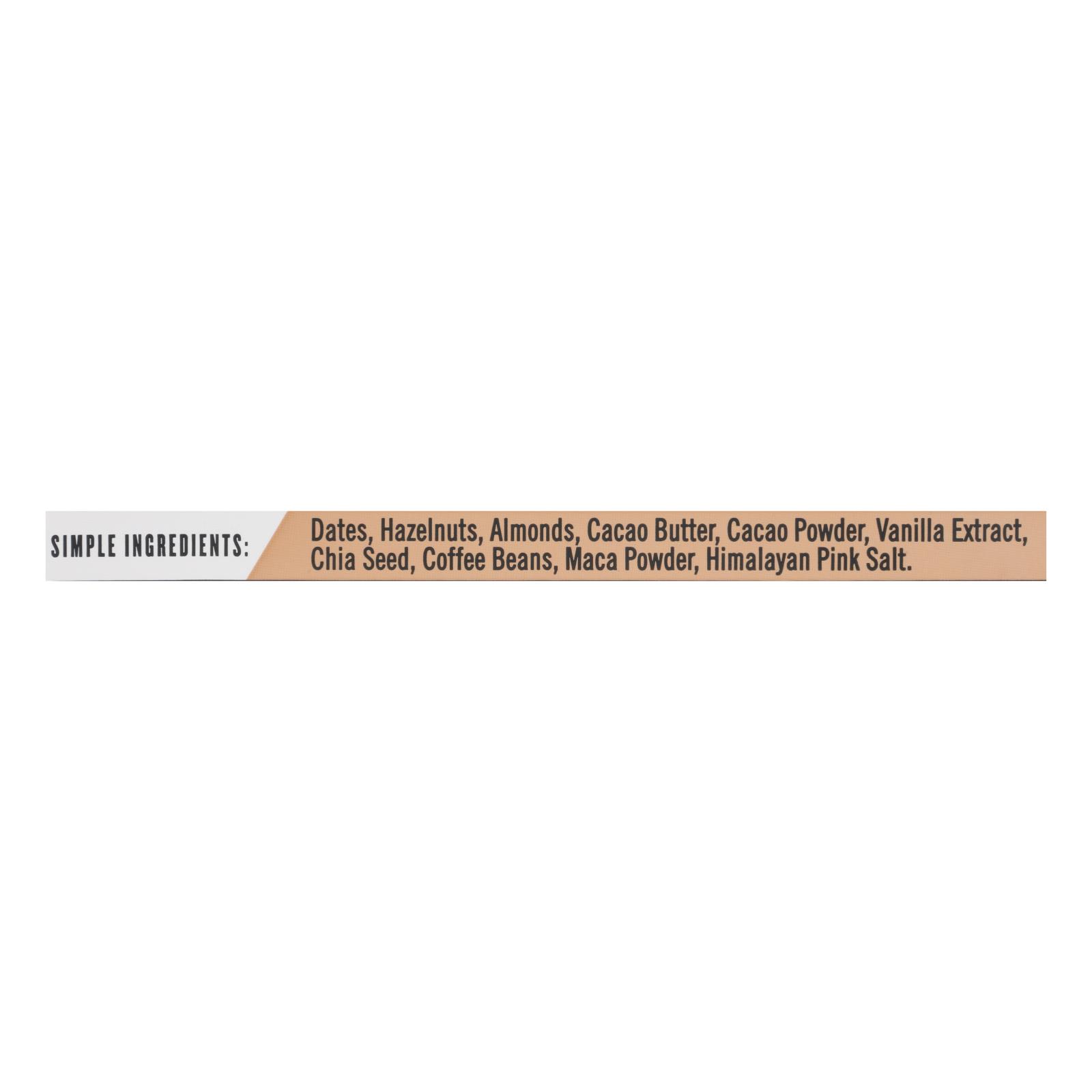 ingredients : dates;hazelnuts;almonds;cacao butter;cacao powder;vanilla extract;chia seeds;coffee beans;maca powder;himalayan sea salt