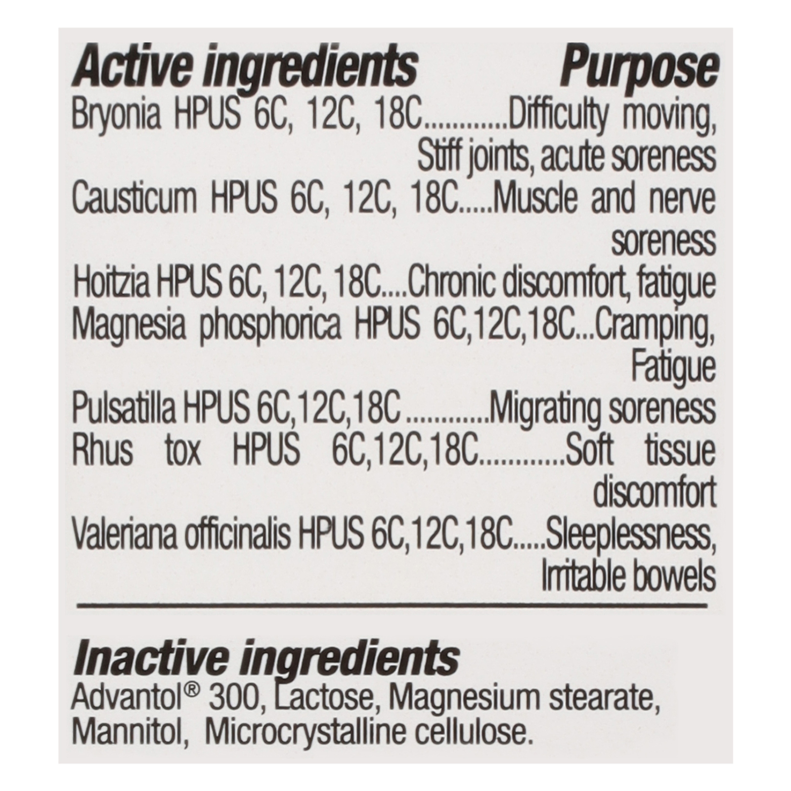 Other information: store at room temperature 15 degrees to 30 degrees c (59 degrees to 86 degrees f). Keep bottle tightly closed active ingredients are micro-diluted in accordance with the homeopathic pharmacopoeia of the united states and are therefore non-toxic with no known side effects or contraindications. Fibromyalgia relief fast dissolving tablets are homeopathic dilutions, for details see www.thereliefproducts.com.